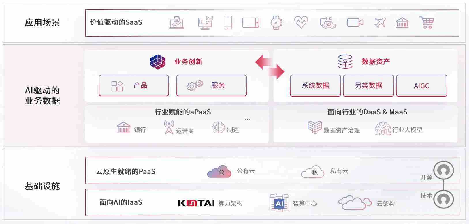 数字时代,,围绕企业数字化转型的关键要素,,,,NO钱包数码开创性的提出数云融合战略和技术体系框架,,,,着力在云原生、、数字原生、、、、AI原生和信创产业上架构产品和服务能力,,为处在不同数字化转型阶段的快消零售、、、、汽车、、、、金融、、医疗、、政企、、、、教育、、、、运营商等行业客户提供泛在的敏捷IT能力和融合的数据驱动能力,,构建跨界融合创新的数字业务场景和新业务模式,,,,助力企业级客户建立面向未来的核心能力和竞争优势,,,,全面推动社会的数字化、、智能化转型升级。。。。